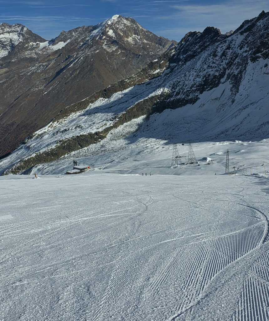The conditions consisted of well-manicured groomers with an impressive 1,180 meters (almost 3,900 feet) of lift-served vertical. As is typical of early season conditions (it is mid-November), as the afternoon progresses, the pistes became a little scraped off and slickish in spots. But overall the skiing was worthy and it felt great to be back in my happy place.
