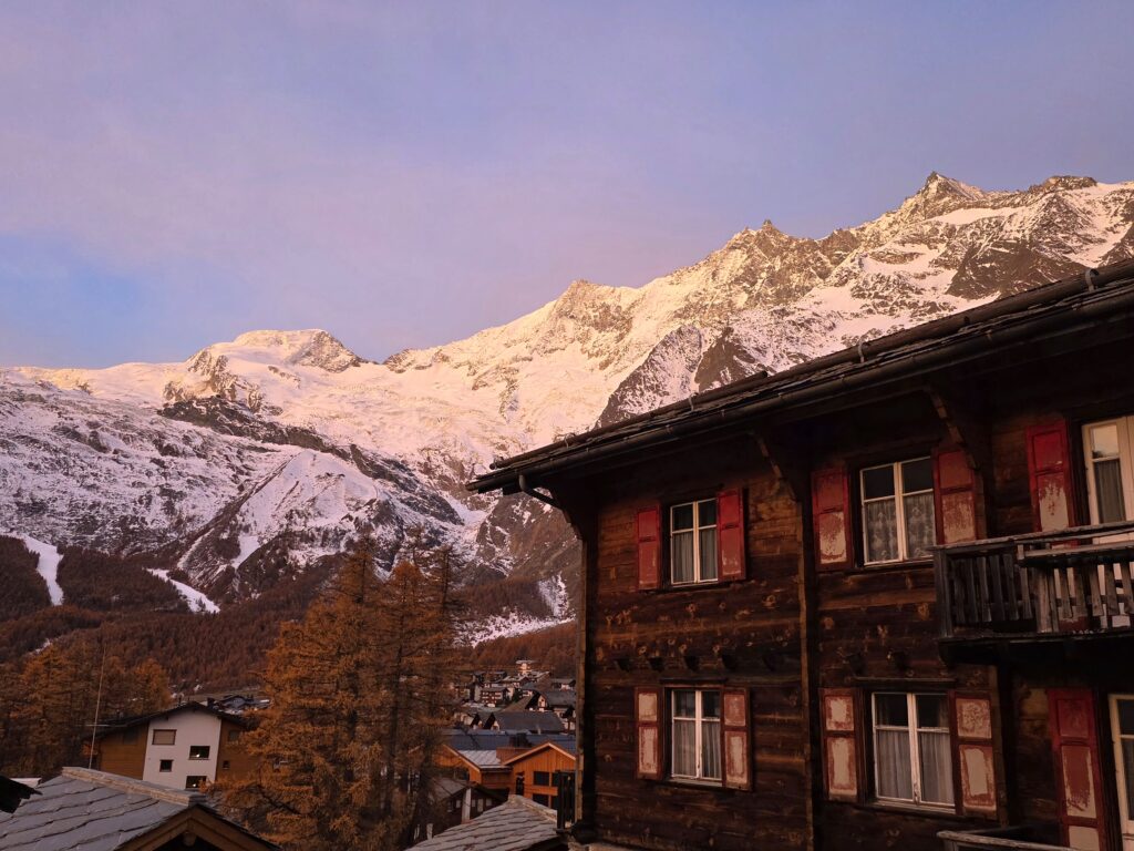 Whenever I travel to ski, I make a pointed effort to get outside for sunrise and sunset. On my second morning I was greeted with some nice pink and purple hues over the Mischabel Range. There is something extra special about seeing the country’s highest peak standing proud above a charming and authentic mountain village.
